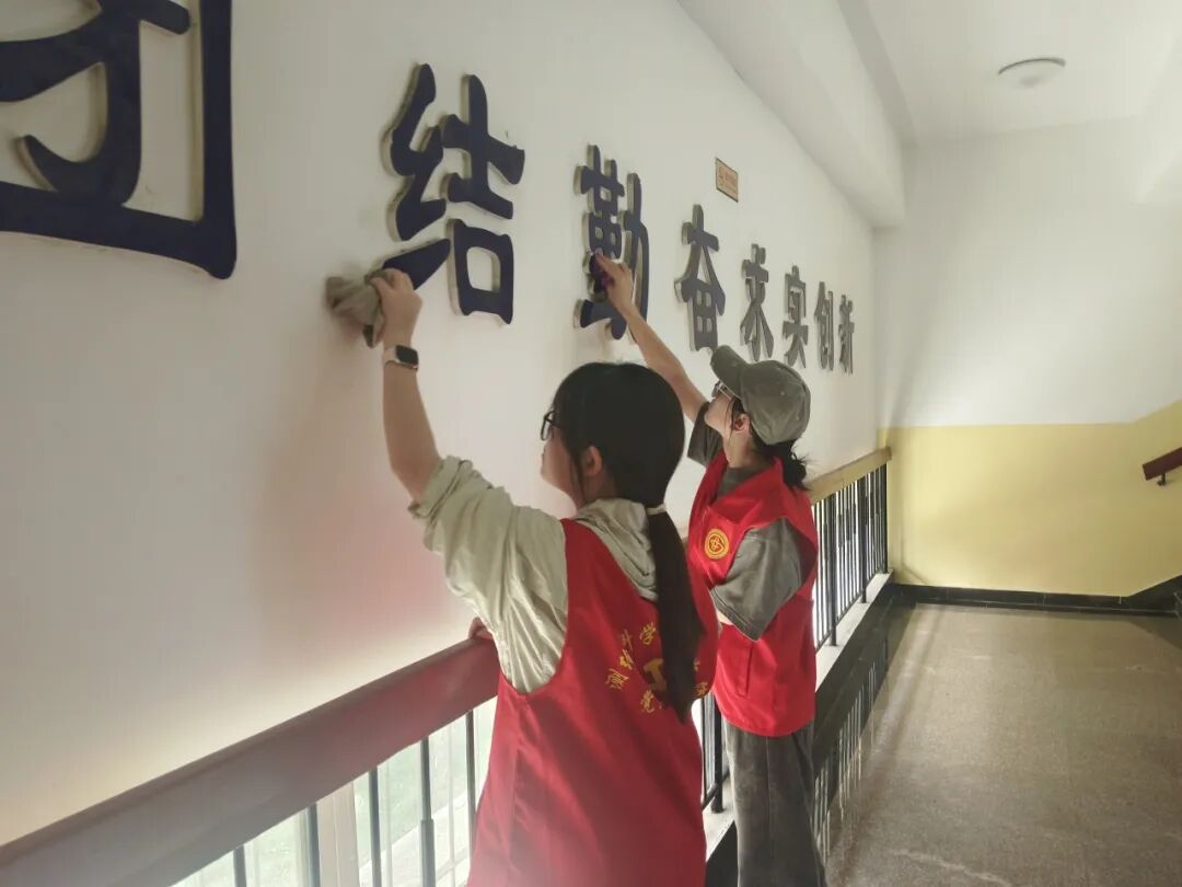 9月9日,员工党员带头,联合各班级同学,以教师办公室、教研室、休息室、教学楼为阵地,开展义务清洁整理行动。同学们手持清洁工具,细致地擦拭桌椅、整理文件、清扫地面,将每一处角落都打理得整洁有序。原本堆满资料的桌面变得清爽利落,落着灰尘的窗台被擦拭得一尘不染……在大家的齐心协力下,教师们的办公区域焕然一新,为老师们的日常工作营造出整洁舒心的环境。