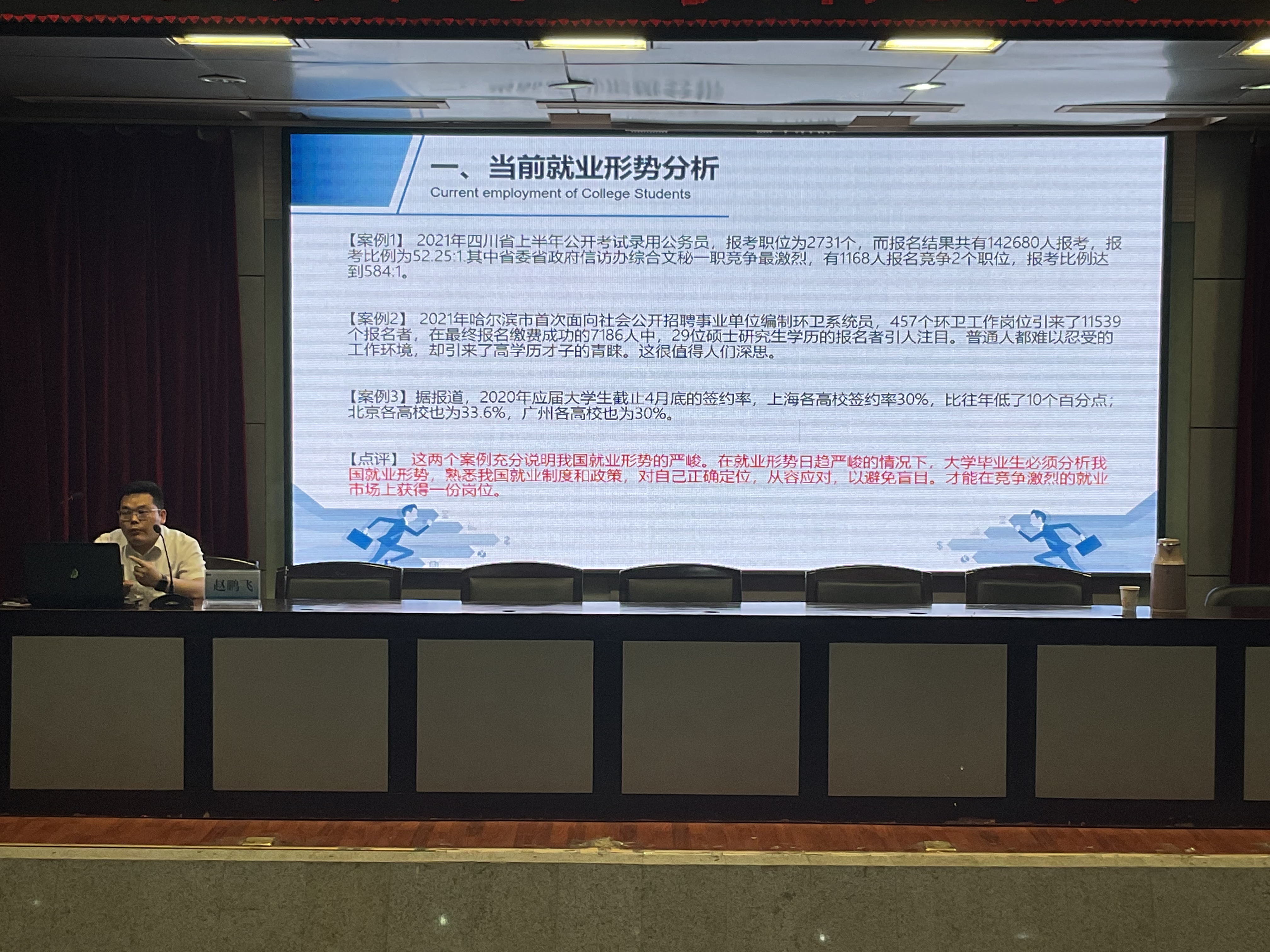 为提前做好2023届毕业生就业指导工作,引导和帮助2023届毕业生认清就业形势,了解就业政策,转变就业观念,积极主动求职就业,6月16日下午,英国上市公司365在图书馆报告厅举办了2023届毕业生就业指导专题报告会,邀请陕建机施集团招聘主管赵鹏飞作专题报告。