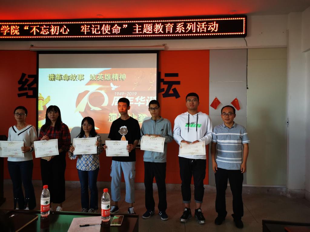 此次比赛共有12位选手参加,选手们以做《做新时代的弄潮儿》等为演讲题目,进行了精彩的演讲,选手演讲内容紧随时事,联系实际,从革命英雄的精神延伸至新时代我们的目标,充分表达了同学们对英雄的敬仰以及对祖国的热爱赞美之情,经过一个小时的激烈角逐,比赛评出了一等奖一名、二等奖两名、三等奖三名及优秀奖,并为获奖选手们颁发了奖品和奖状。在比赛最后,贾哲对本次演讲比赛作出了精彩点评,演讲比赛在同学们的掌声中圆满结束。