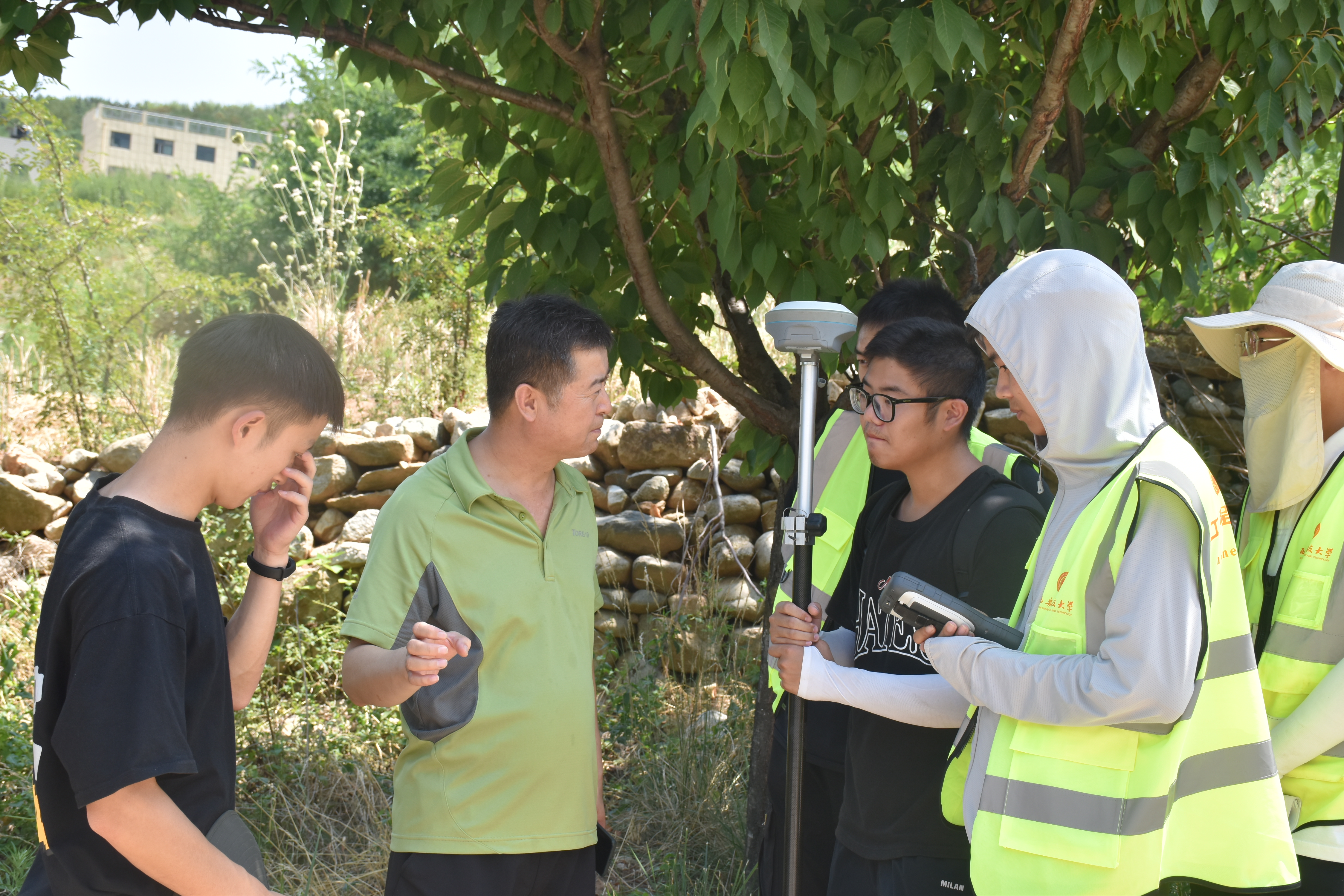 为深入了解英国上市公司365本科生野外实习开展情况,看望慰问实习师生,7月10日,测绘公司党委书记殷屈娟、副书记贾哲及2019级辅导员前往蓝田实践教学基地看望慰问工程测量实习师生。