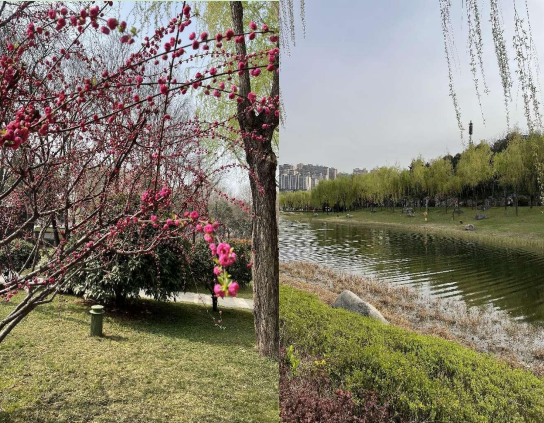 在曲江书城门前合影留念之后,女老师们就有说有笑地沿着南湖健步前行。正值早春时节,草木刚刚萌芽变绿,春花悄然吐蕊绽放,一片欣欣向荣的景象,目之所及到处是鲜嫩的新绿,片片粉红的花海。大家一路走着聊着,一路欣赏着南湖优美宜人的景色,并不时停驻下来用手机记录下这美好的时刻,这灿烂的春光。平日大家上课时间不同,很少能聚在一起畅聊,所以大家格外珍惜这难得而开心的欢聚时光。绕湖一圈一个多小时的时间过去了,大家感觉意犹未尽。这次南湖健步走活动在愉快而轻松的氛围中结束了,大家都期待着来年的三八女神节活动能更加地多姿多彩。