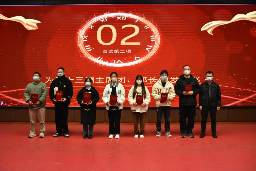 会议伊始,由团委书记张雷、团委副书记全佳豪、员工会主席王艺臻为第三十三届主席团及部长颁发聘书。在此之后由第三十三届团委副书记陈艳丽、现任团委副书记全佳豪、员工会主席王及部长、干事代表分别做了发言,他们均表示要本着“为同学服务”的宗旨,严于律己、以身作则,把公司所急、同学所需、团委员工会所能作为工作出发点、落脚点,从而共同开创团委员工会的新局面。
