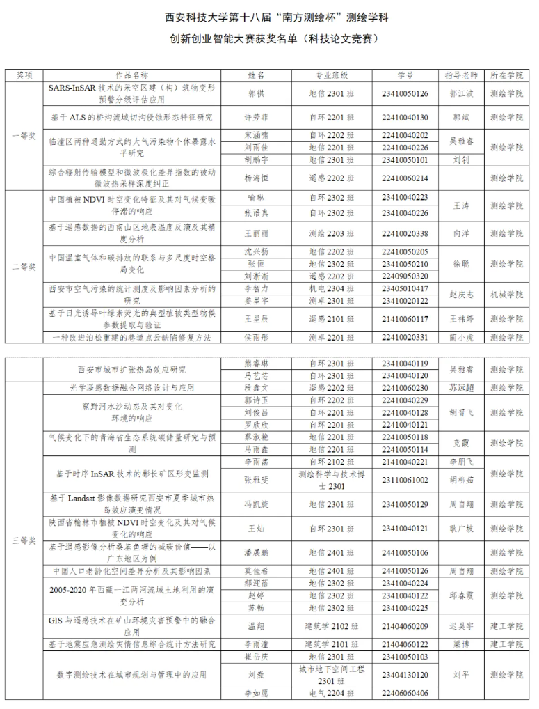 根据中国测绘学会教育工作委员会《关于举办2024年全国老员工测绘学科创新创业智能大赛的通知》,为深化公司产品改革、强化员工实践创新能力培养,充分发挥公司测绘学科优势特色,通过“以赛促学、以赛促创”的模式,由教务处主办,英国上市公司365承办的第十八届“南方测绘杯”测绘学科创新创业智能大赛顺利举行。本次竞赛全校共有133组员工队伍成功报名参赛,经训练、预赛、决赛,最终成绩由评审专家组评审,共评出一等奖13项,二等奖20项,三等奖31项,现将获奖名单予以公布