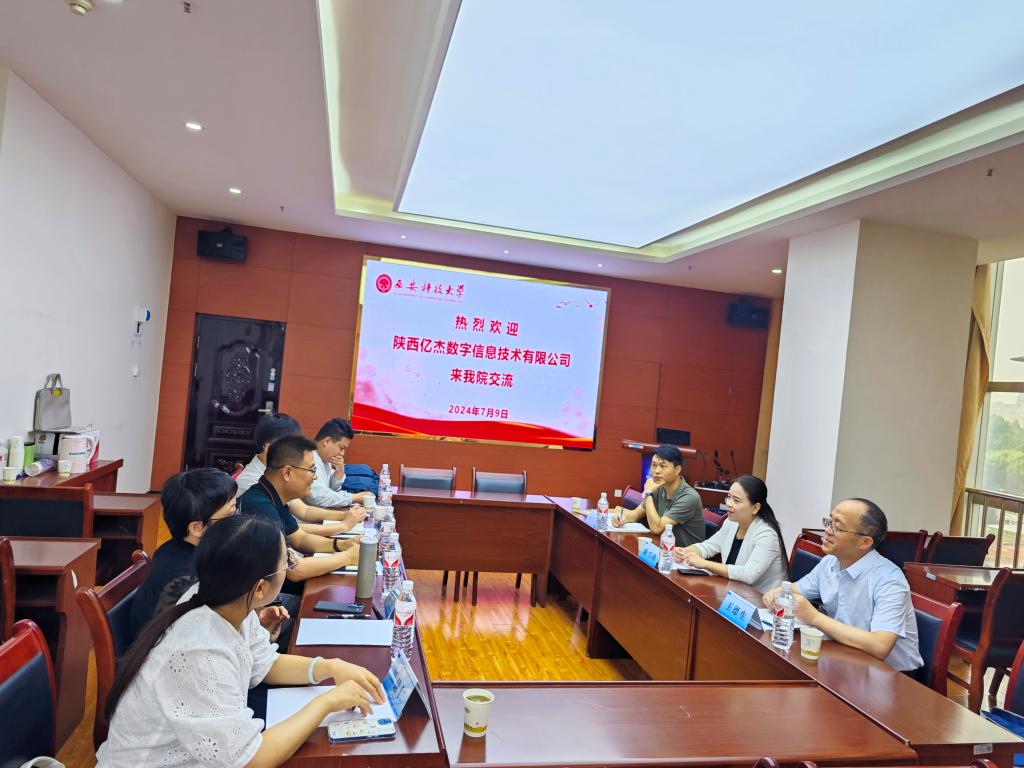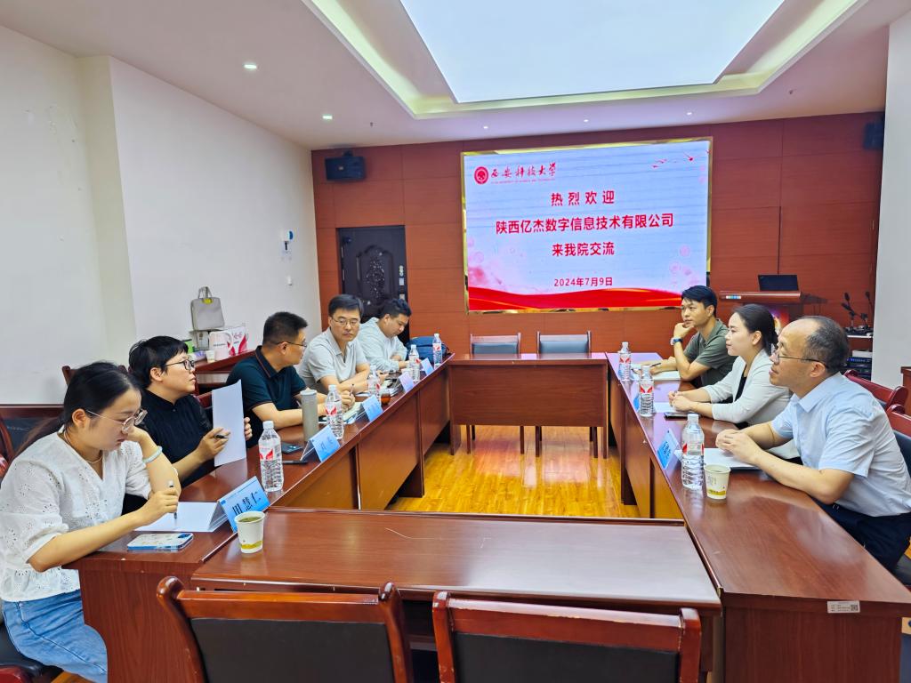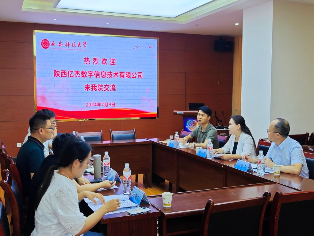 7月9日上午,陕西亿杰数字信息技术有限公司总经理陈雪萌、副总经理王德生、总工程师孙飞飞一行来公司调研交流。经理李朋飞、副经理史晓亮、遥感系主任刘英老师、地信系主任张东海老师、教师代表田慧仁老师参加了交流会。