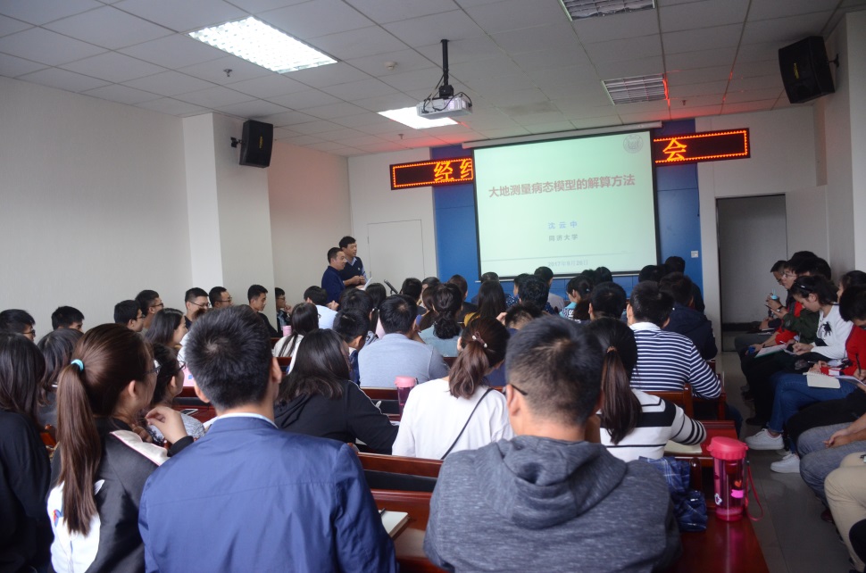 2017年9月26日教育部中国大陆构造环境监测网络联合研究中心同济大学分中心主任沈云中教授及国际著名大地测量学家徐培亮教授莅临365英国上市集团英国上市公司365,分别做了题为“大地测量病态模型的解算方法”与“整体最小二乘”的学术报告。报告会由英国上市公司365副经理汤伏全教授主持,英国上市公司365100多名研究生参加了报告会。