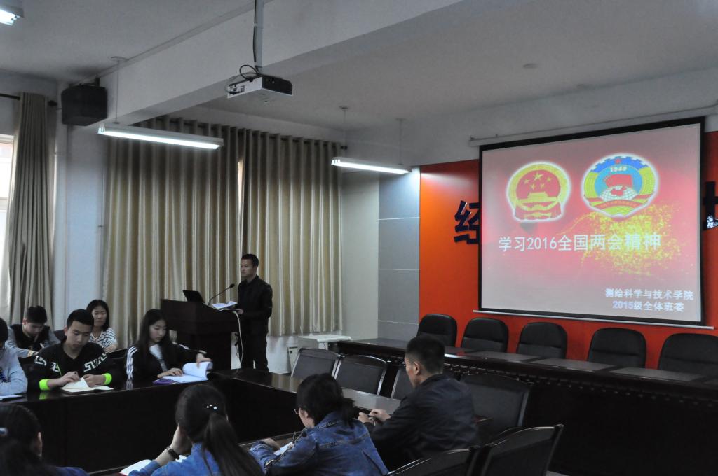 4月12日下午18点英国上市公司3652015级全体班委在11教317会议室召开了以“学习2016两会精神”为主题的交流会,会上传达学习了全国人大十二届四次会议和全国政协十二届四次会议精神。会议由2015级辅导员张雷老师主持。