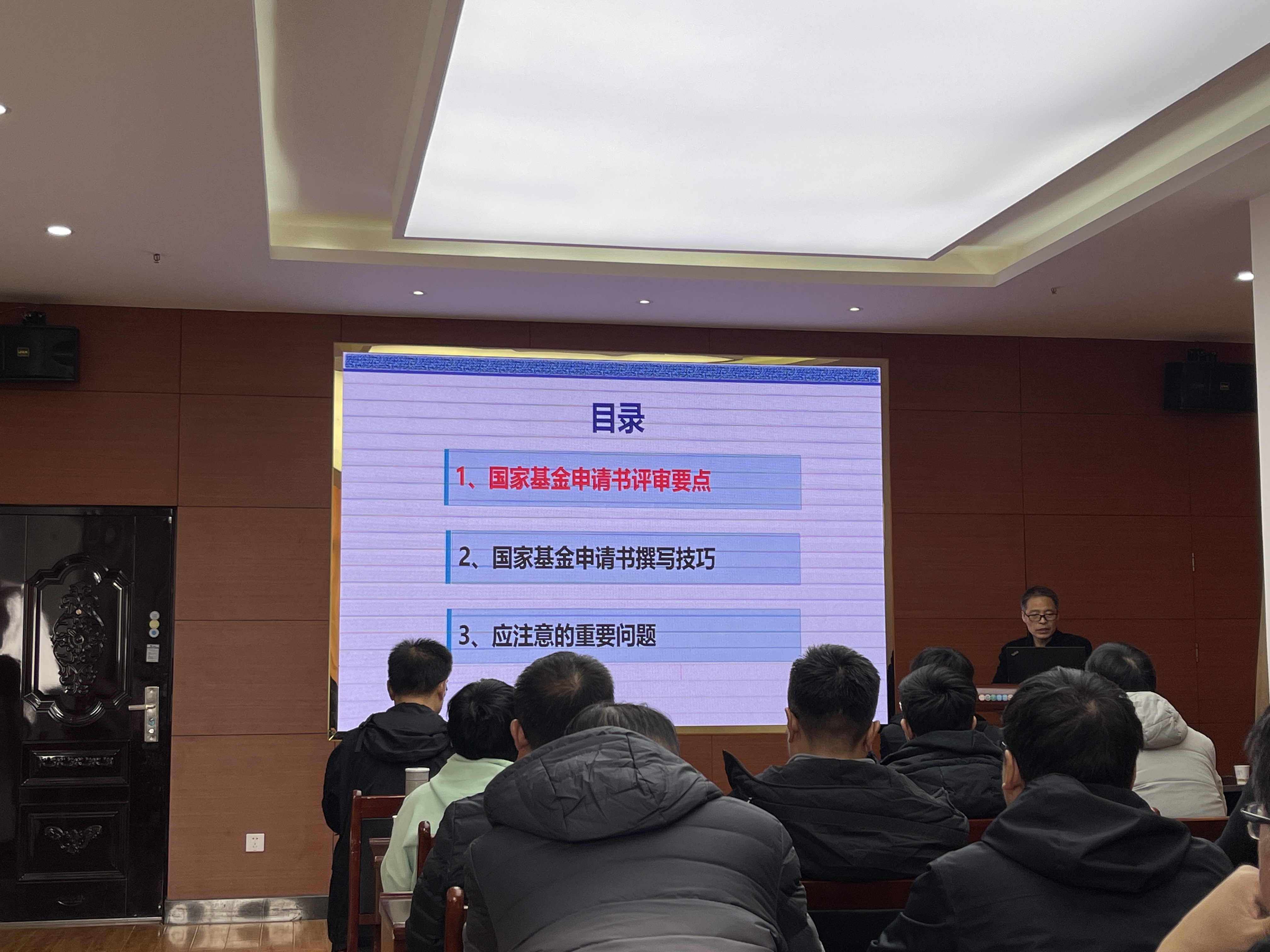 王文龙教授首先以国家基金申请书评审要点、国家基金的评审程序为切入点,介绍了基金评审的三要素“申请书的创新性、申请人的学术水平、研究条件”的重要性。以评审专家的角度详细分析了专家评审基金申请书的关注点,同时也例举出影响会评结果的负面情况。讲座期间,王教授就选题来源、科学性撰写、摘要、研究意义、研究方法、研究过程等方面详细介绍了国家基金申请书撰写技巧,同时也就每一点以具体的论文案例深度解读。最后,王文龙研究员针对国家自然科学基金申报为参会教师答疑解惑,与参会教师进行了热烈的交流与讨论。