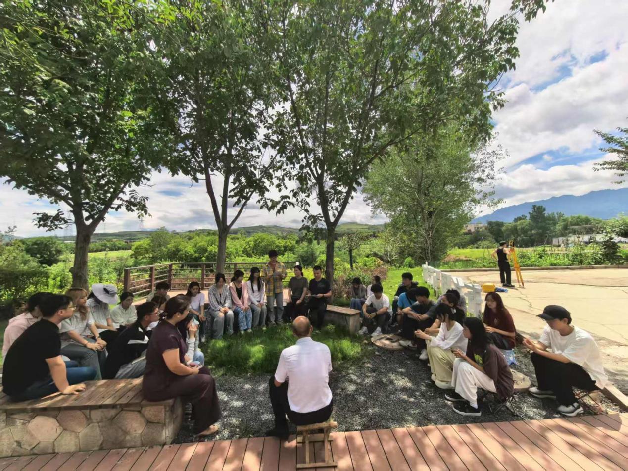 适逢公司组织实践教学基地走访活动,面对同学们热切的目光,公司党委书记戴开文指着远处的一片核桃树说:“同学们,那片核桃树下阴凉,远方是大好河山,我们在那里开展一次微党课,来看看你们丈量山河间的思考,来聊聊测绘青年的使命与担当。”